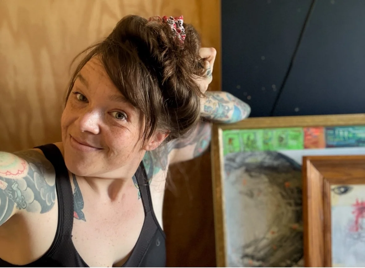 Hannah Grace Lilly is an artist using watercolor, water-soluble crayons, painting, drawing, hand-sewing, collage and many other mixed media.