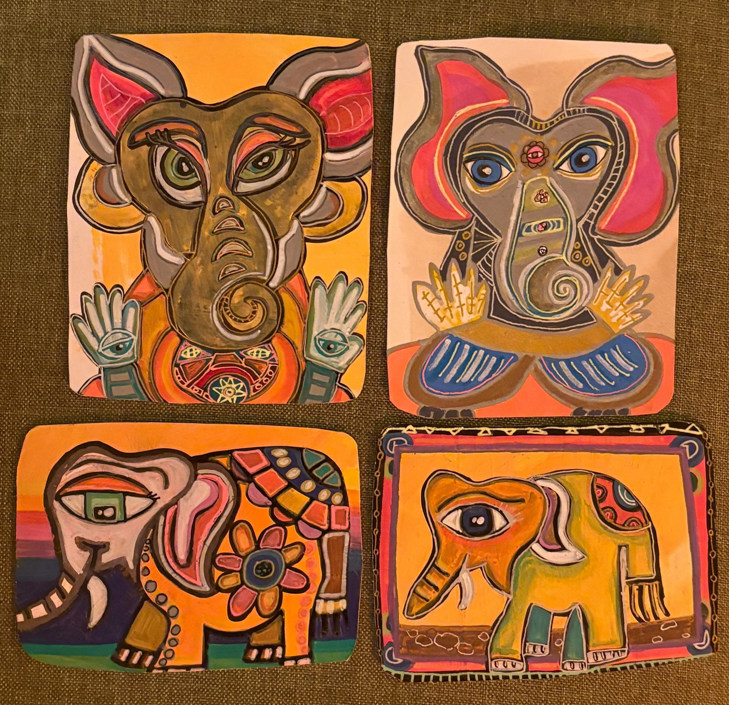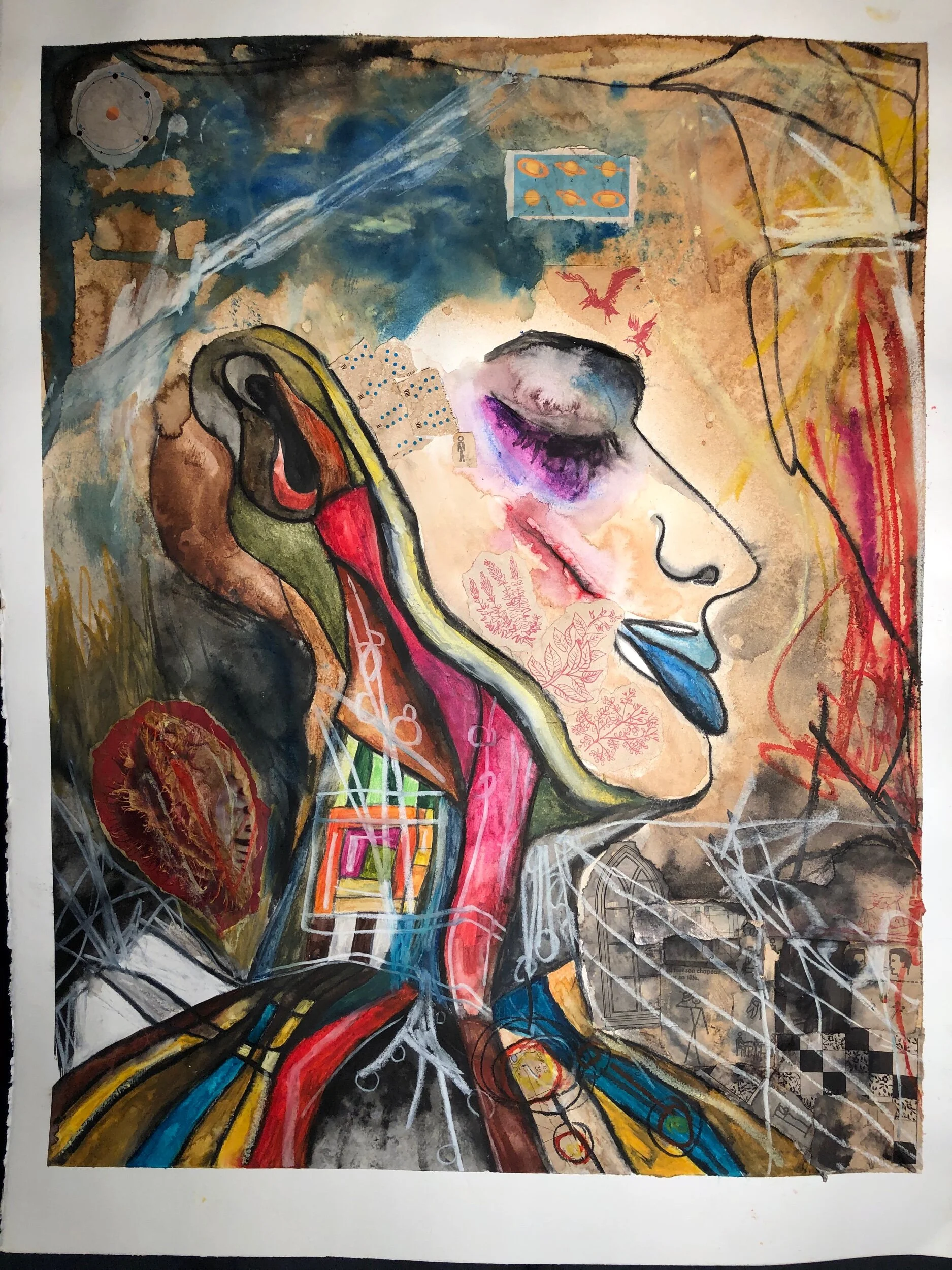 Making room for more. There’s always room for more art. Artwork for Sale Ouch. And 5 Birds. $67.50 Profile Head $90.00 Elephants $16.00 Sad Clowns $25.00 Side eye $125.00 Untitled $100.00 Orange $175.00 Chakra Tower $175.00 Self Portrait C $150.00 Self portrait B $150.00 Self portrait A $150.00 Mindfulness 5 $125.00 Mindfulness 4 $200.00 Mindfulness 3 $175.00 Mindfulness 2 $200.00 Mindfulness 1 $125.00 Quilt #1 $200.00 MachineHead $200.00 MusicHead $200.00